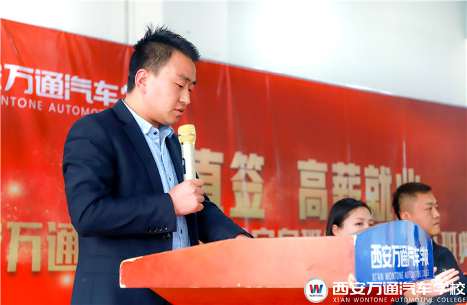 為加強企業與學校之間的合作,給學生的實訓與就業提供廣闊發展空間,3月25日,西安萬通汽車學校在報告廳2樓隆重舉辦了2021年校企定向班簽約儀式暨開班典禮!西安萬通汽車學校校長助理鄭助、學生處張主管、學生職業規劃中心彭主管以及陜西博宏人事總監李總、培訓部總監呂總共同出席了此次活動。