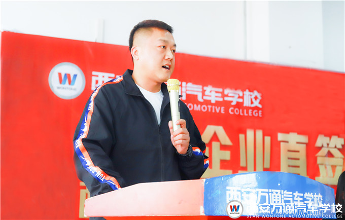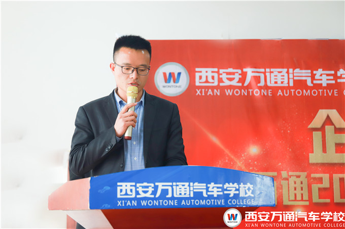 陜西博宏人事總監李總詳細分析了當前我國汽車服務企業發展的形式以及未來汽車后服務市場人才的發展方向,并對西安萬通的辦學水平給予高度評價。他表示通過校企定向培養,能夠依據市場需求,定制國家、行業急需的人才,助力市場經濟發展。