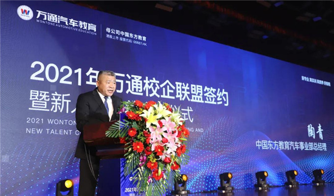中國東方教育集團汽車事業部總經理陶青在致辭中表示,萬通汽車教育辦學33年來,始終以辦世界最好的職業教育為愿景,積極探索中國職業教育的創新與發展之路。本次校企聯盟簽約暨新人才培養啟動儀式,旨在響應國家以經濟發展為向導,支持社會力量發展職業教育的政策方針。
