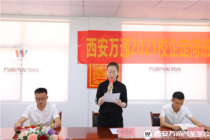 張總具體介紹了崗前定制的課程內容及時間安排,并表示:“作為企業代表,來參加此次校企定向班開班典禮,我感到十分榮幸。西安萬通汽車學校的學生具有高素質,高技能的特點,作為企業,我們很看重這一點,希望能和西安萬通有更深層次的合作。”