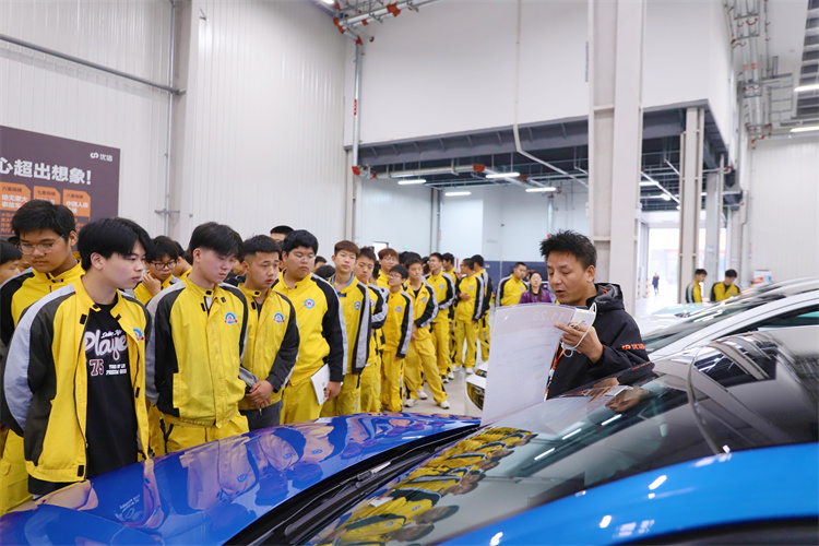 在參觀過程中,新生同學還在優(yōu)信二手車見到了已經(jīng)在企業(yè)就業(yè)一年多的學長閆昕,學長也將自己在優(yōu)信二手車的親身體驗和在場各位學弟學妹們分享,鼓勵學弟學妹們在學校好好學技術,希望在不久的將來可以在職場和大家見面。