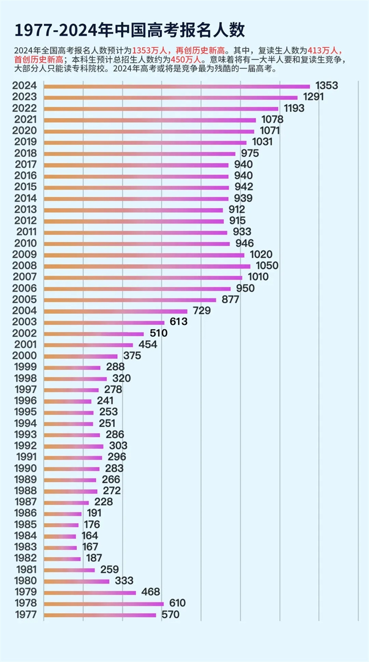 2024高考人數(shù)1353萬(wàn),復(fù)讀生413萬(wàn),900萬(wàn)考生將落榜,高考生的出路在哪里……